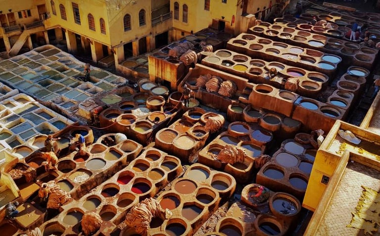 Explore the UNESCO-listed Fes Medina, visit Al Quaraouiyine University, Bou Inania Madrasa, and the famous leather tanneries.